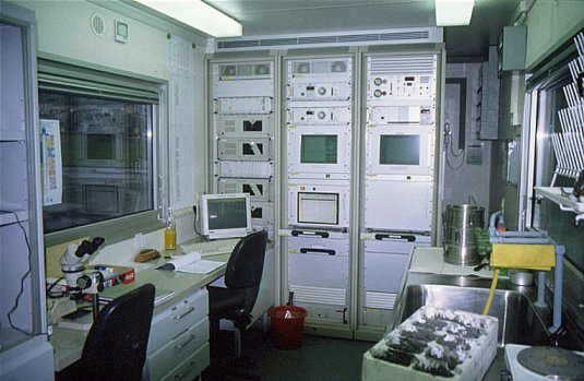 Bild: Innenraum Labor-Container, Thermalwasserbohrung Bad Ditzenbach